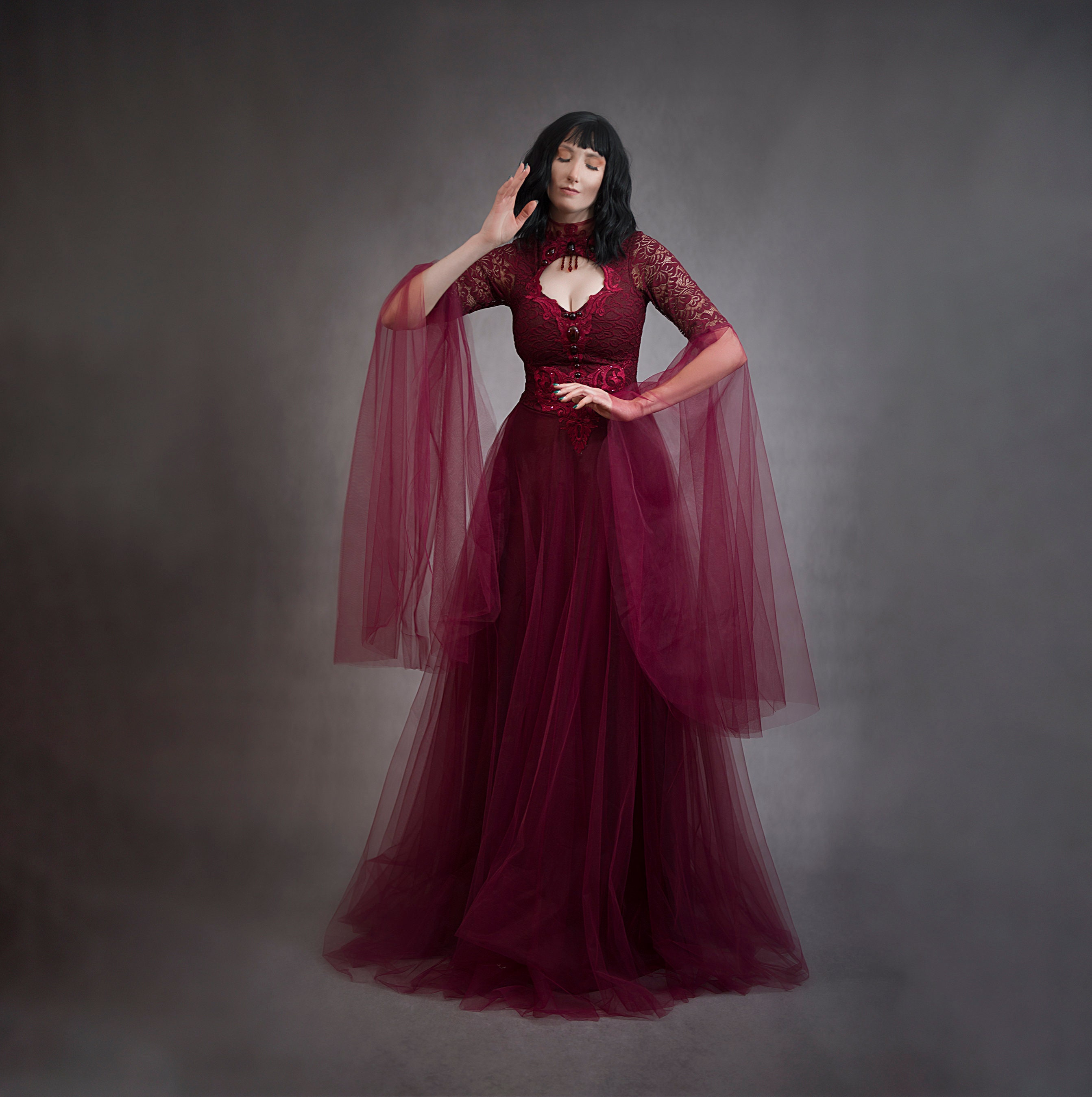 Elven Wedding Dress Fantasy Medieval Baroque Beads Stones Gothic Sleeves Bells Long Train Tulle Sweetheart Burgundy Etsy De