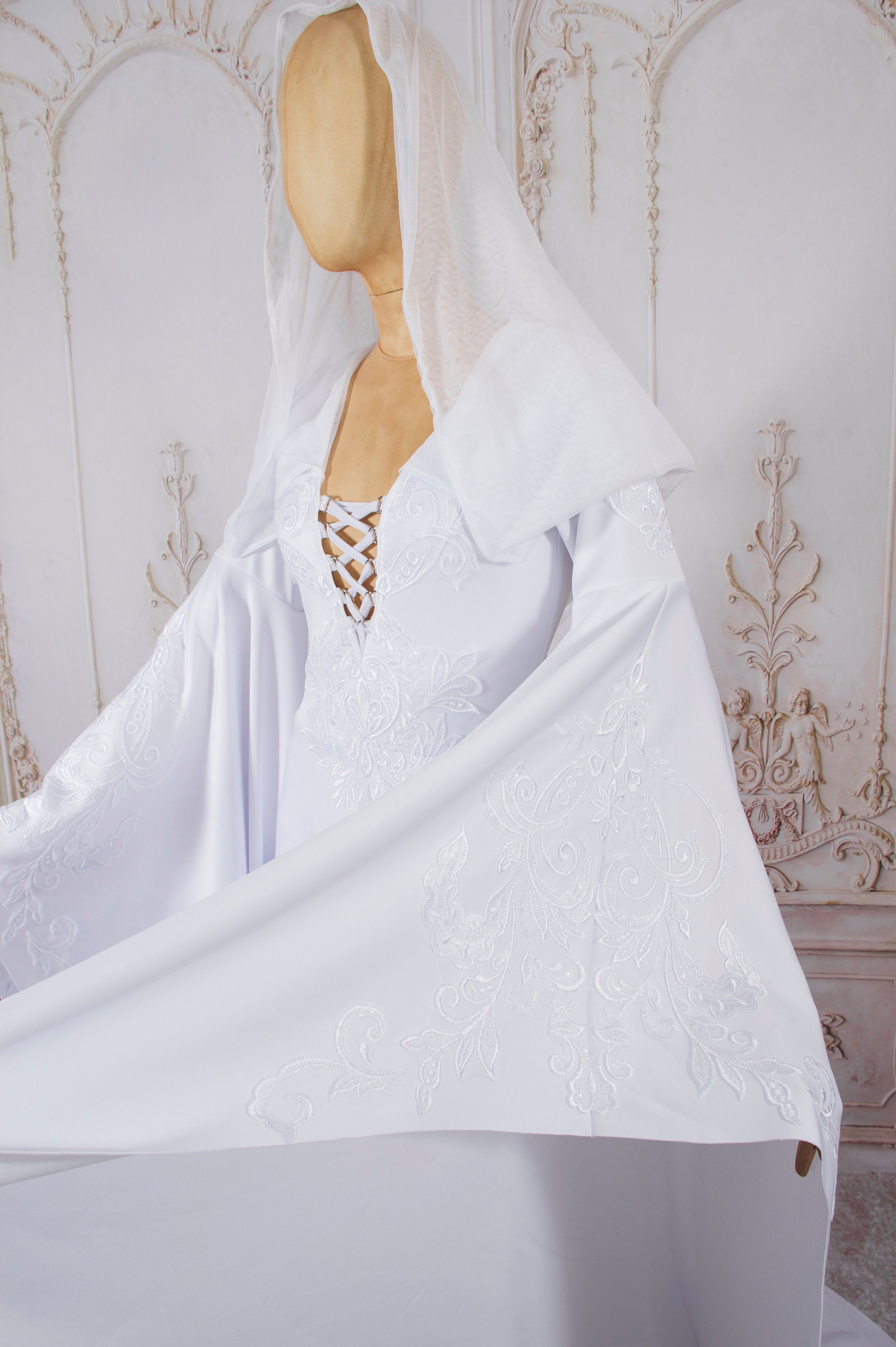 Elven Wedding Dress Gown Fantasy White Baroque Medieval Fairy Prom Pagan Viking Witchy White Black Red Ecru Long Sleevs Hood Etsy De